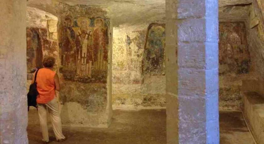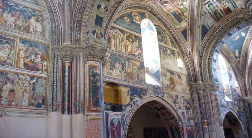 Splendidi poi gli affreschi allegorici della scuola di Siena e di Giotto all'interno della "Chiesa di S.Caterina d'Alessandria", rappresentanti scene della genesi, dell'apocalisse e della vita della santa.